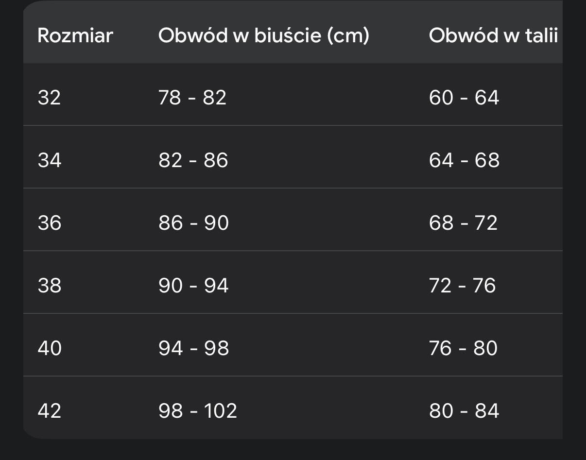 Tabela rozmiarów